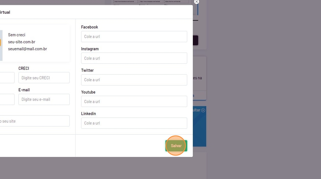 Para criar um cartão virtual no sistema Tecimob, siga estes passos: