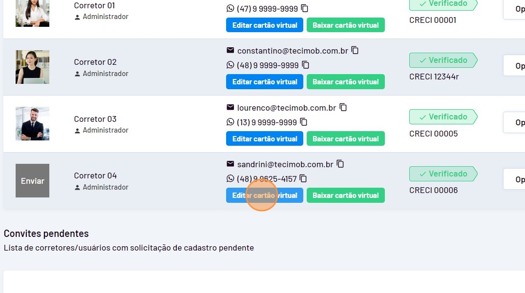 - Vá até seu usuário e clique em "Editar cartão virtual".