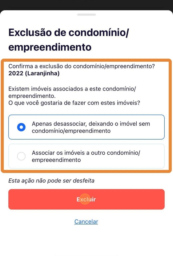 - Defina o que deseja fazer com os imóveis vinculados ao Condomínio.
