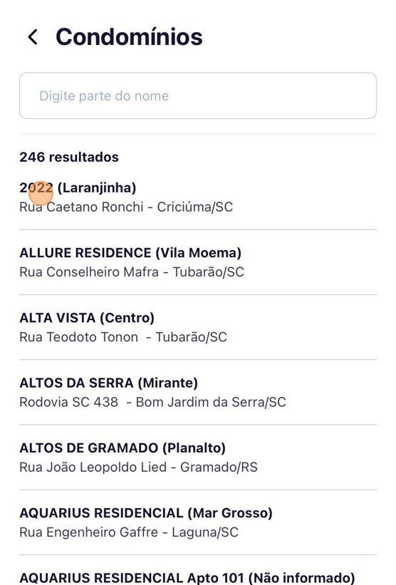 - Clique em "Pesquisar" para localizar o condomínio que deseja excluir.