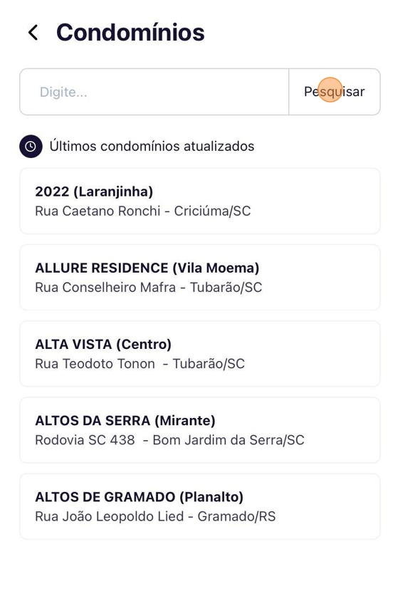 - Clique em "Pesquisar" para localizar o condomínio que deseja editar.