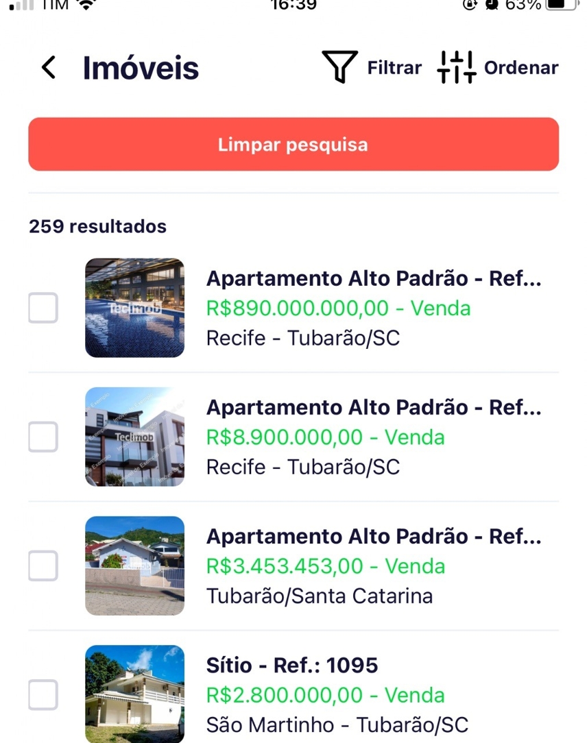 - Pronto! Serão listados todos os imóveis encontrados de acordo com o filtro que você realizou.
