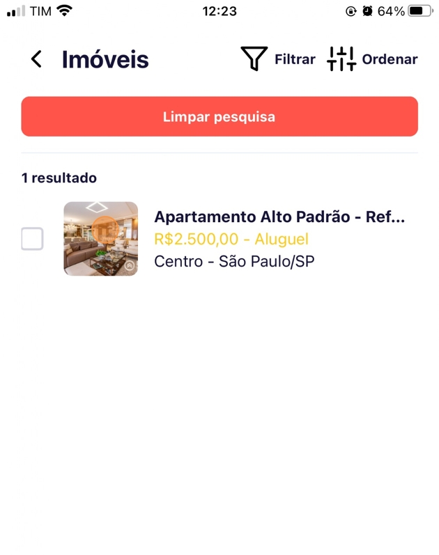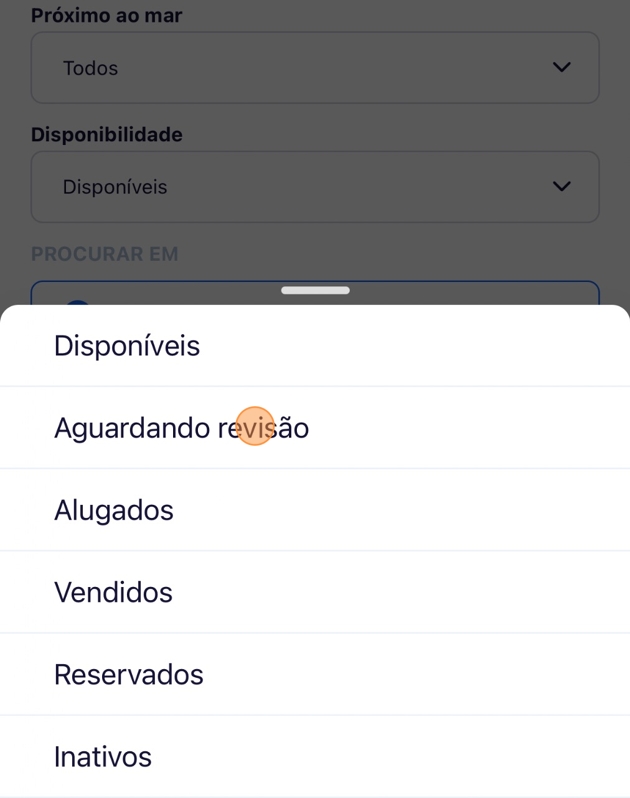 - Com os resultados encontrados, clique em cima do imóvel que deseja revisar.