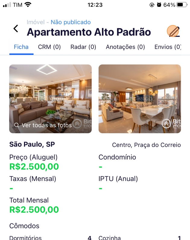 - Ao abrir a ficha do imóvel, clique no símbolo do lápis que fica no canto superior direito.