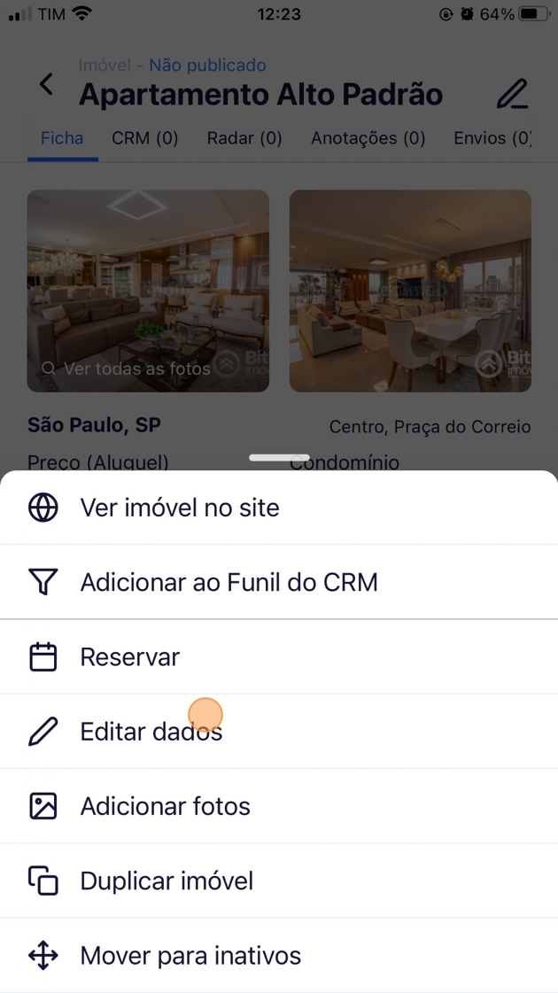 Para revisar as informações do imóvel pelo Aplicativo Tecimob, siga estes passos: