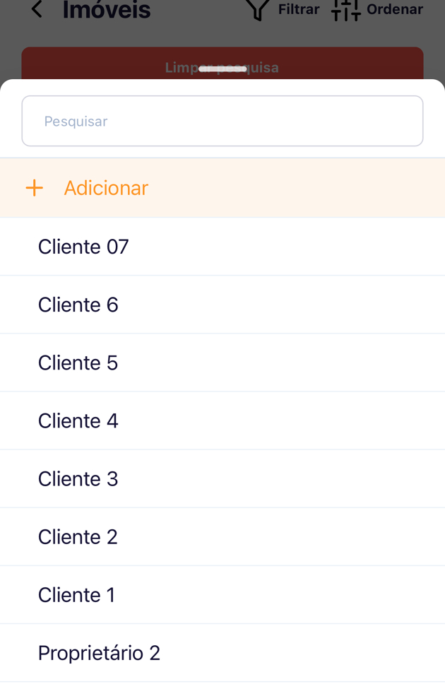 - Utilize o filtro para pesquisar por seus imóveis através de uma das opções.