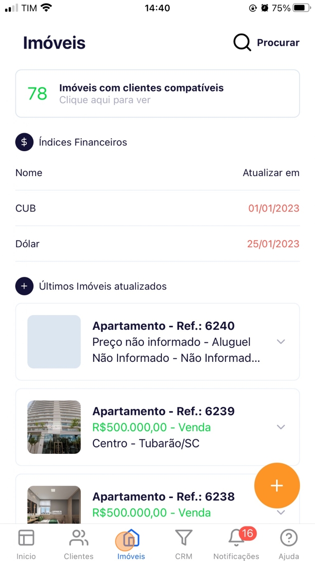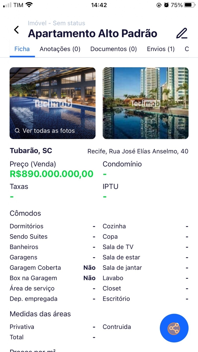 Para compartilhar imóveis no aplicativo Tecimob, siga esses passos: