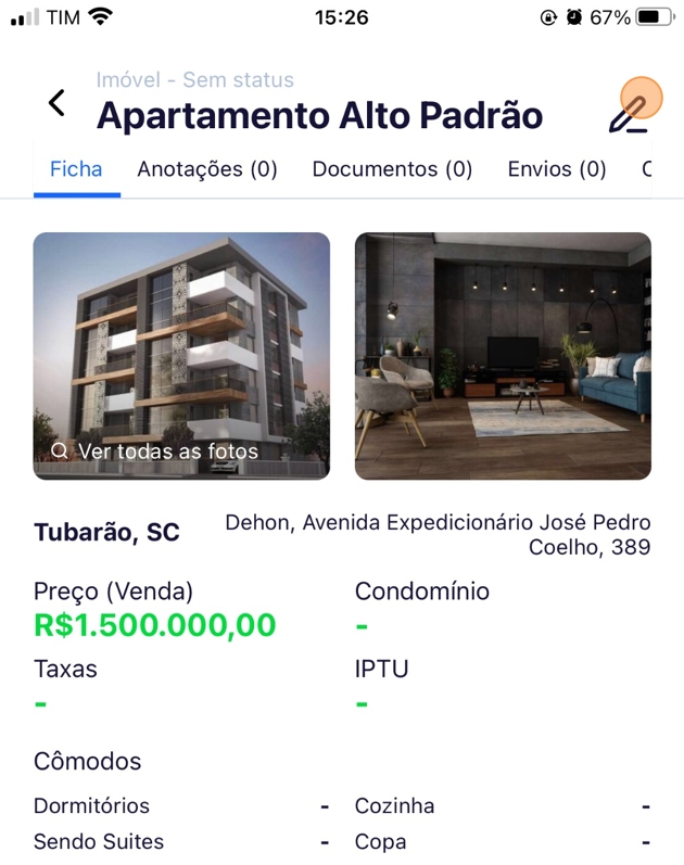 - Após encontrar o imóvel, clique no ícone do Lápis.