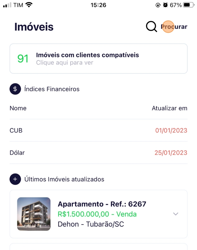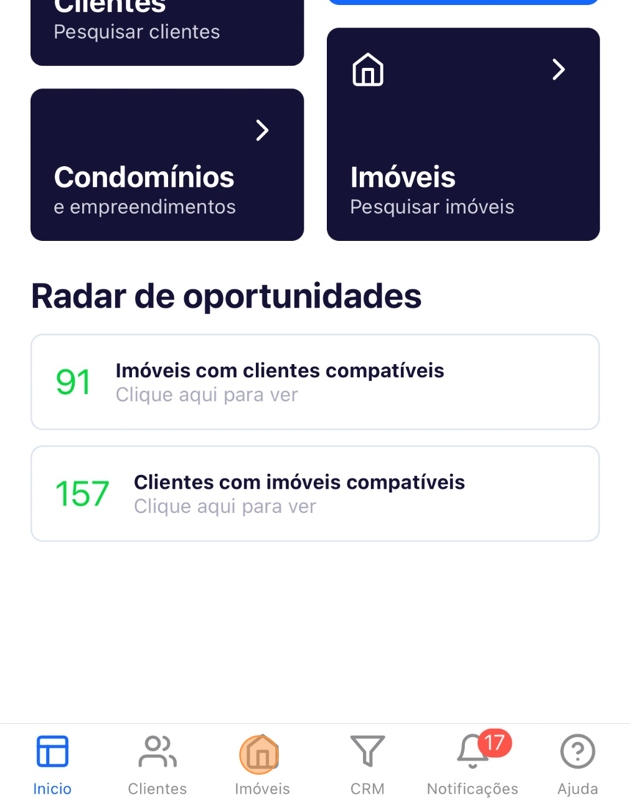 - Na página inicial do Aplicativo, clique em "Imóveis".