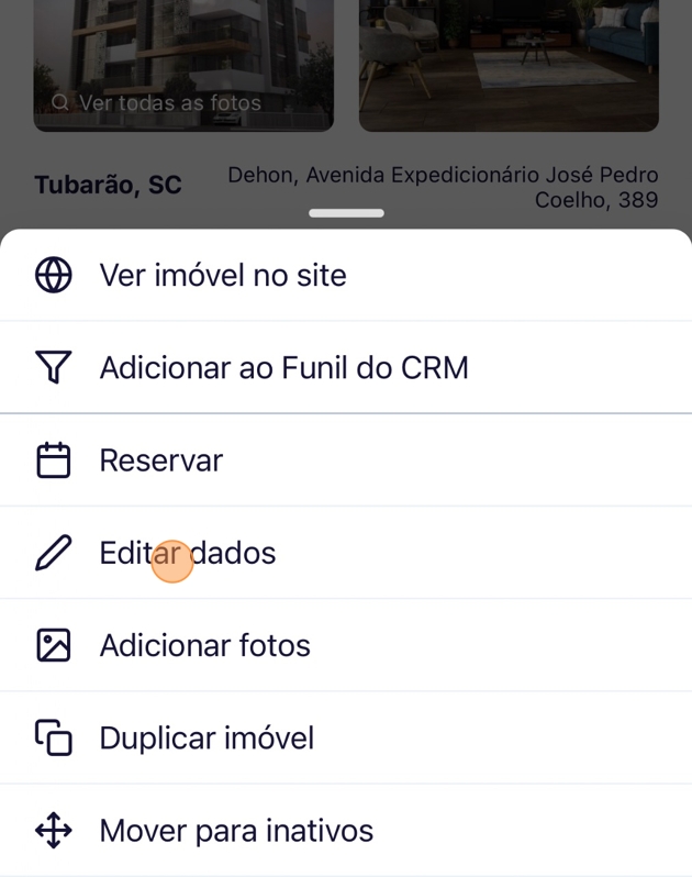 Para editar os dados do imóvel no Aplicativo Tecimob, siga estes passos: