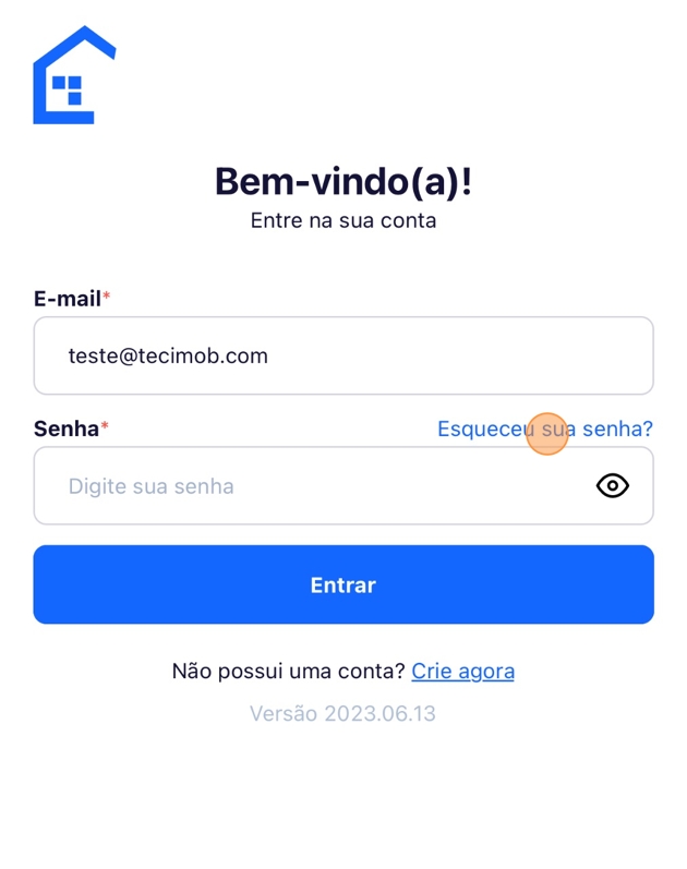 - Abra o aplicativo do Tecimob e clique em "Acessar minha conta".