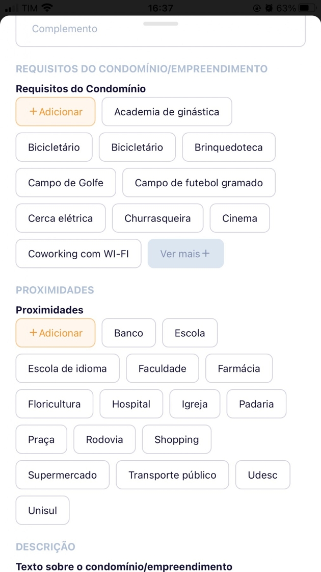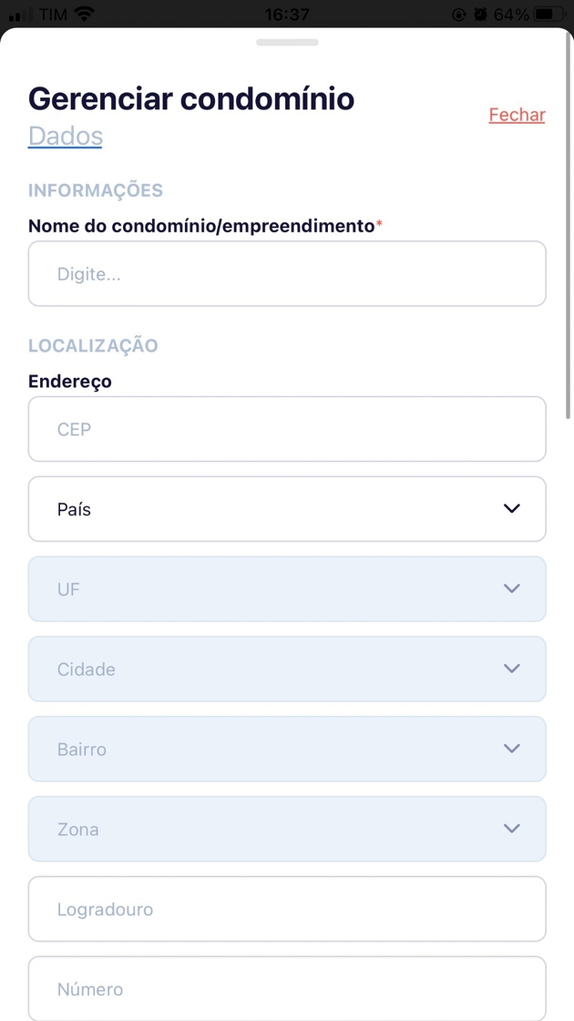 - Preencha o nome do condomínio/empreendimento e localização.
