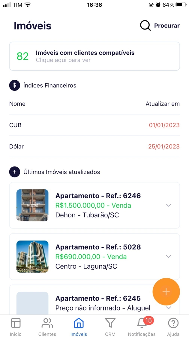 - Na página inicial do Aplicativo, clique em "Imóveis".
