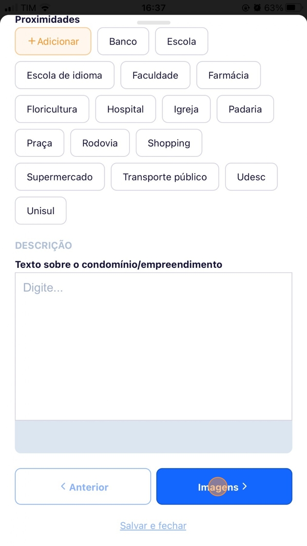 - Adicione uma descrição e clique em "Imagens" para ir para a próxima etapa.