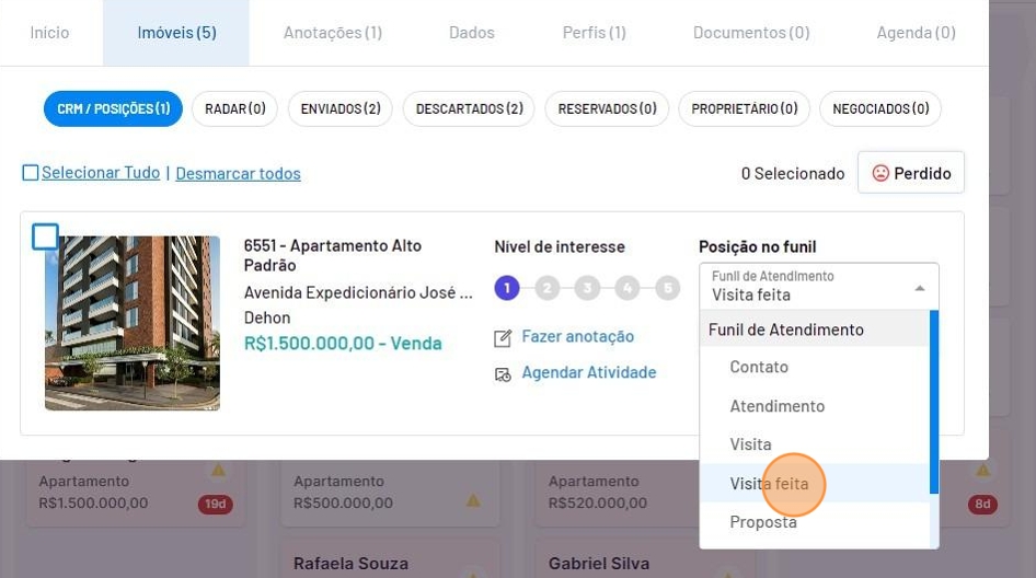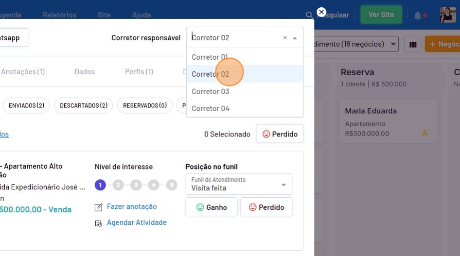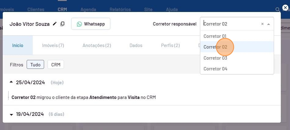 - E em "Corretor responsável" defina para qual corretor o cliente será transferido.