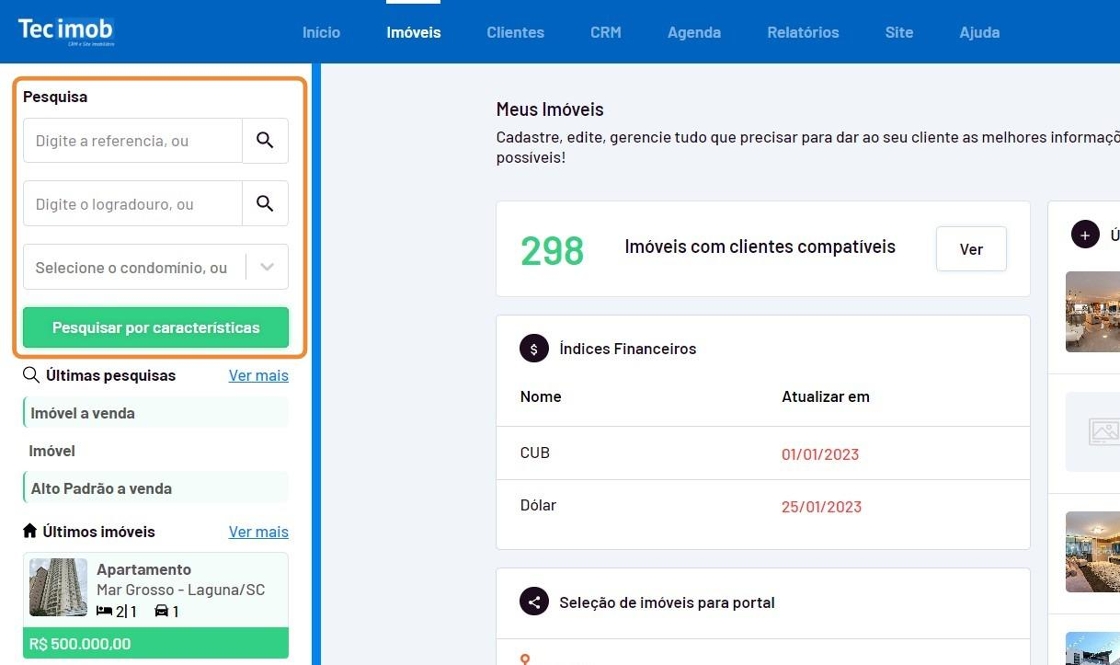 - Realize uma pesquisa para encontrar o imóvel desejado.