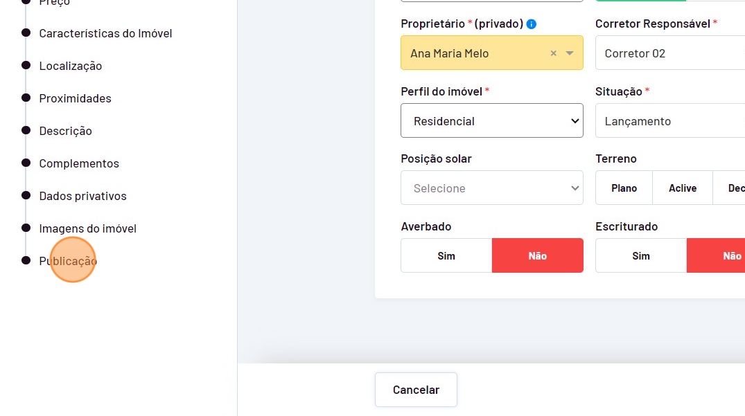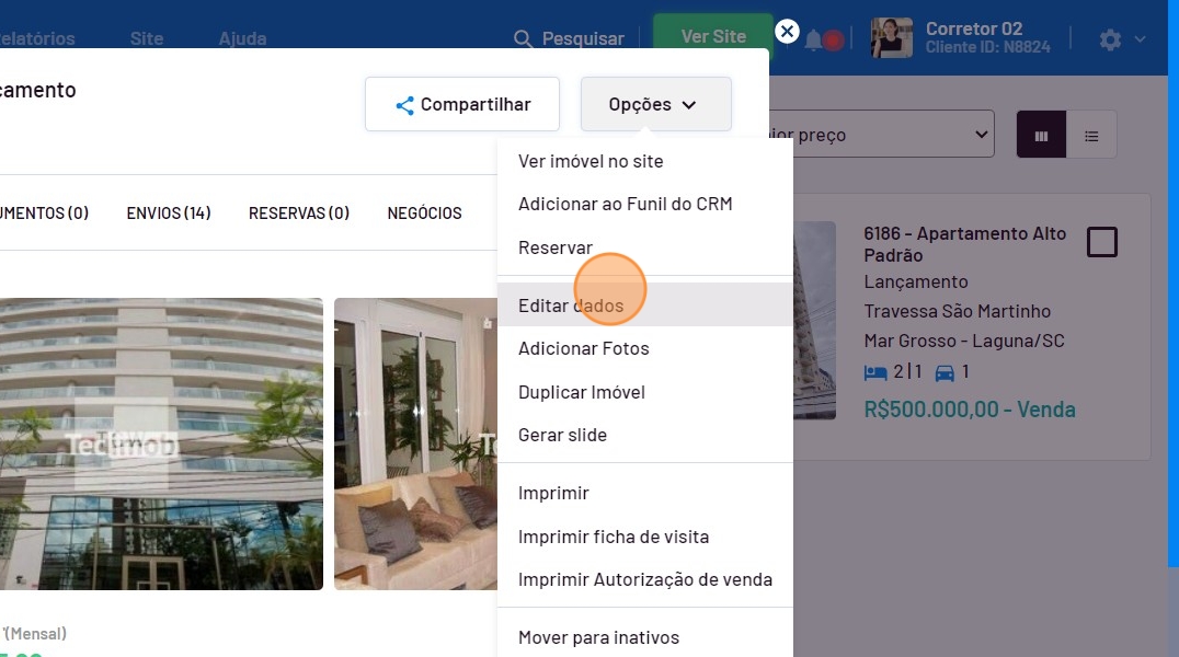- Ao abrir a ficha do imóvel, vá até "Opções" e clique "Editar dados".