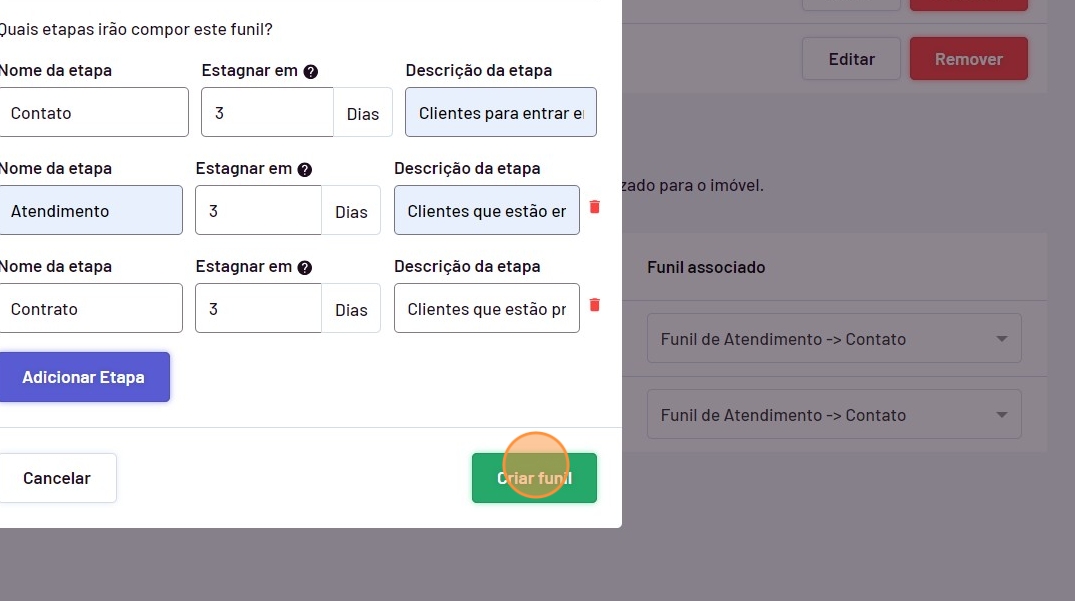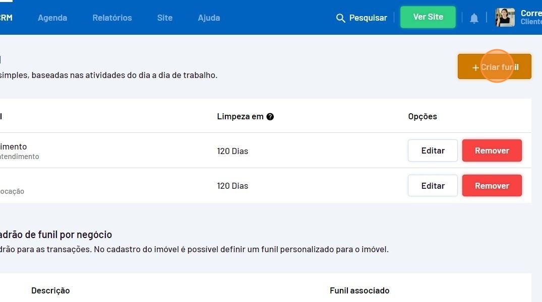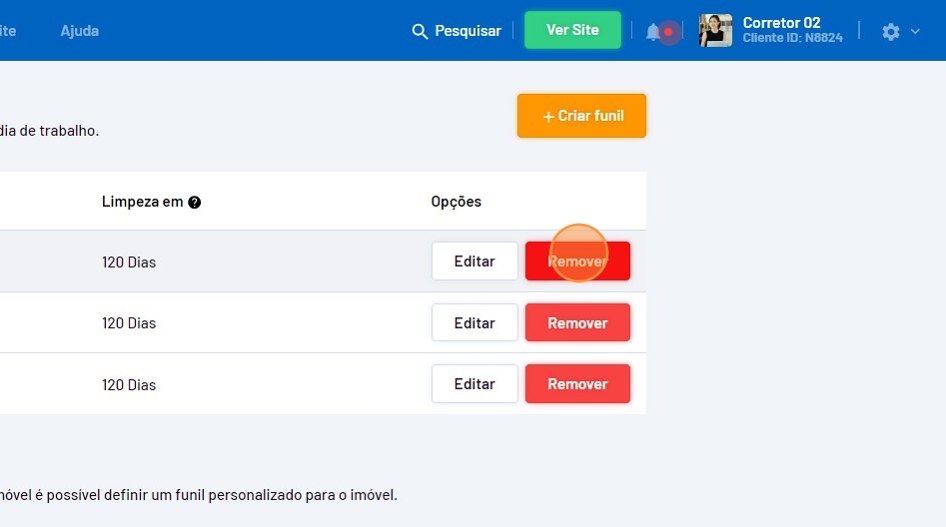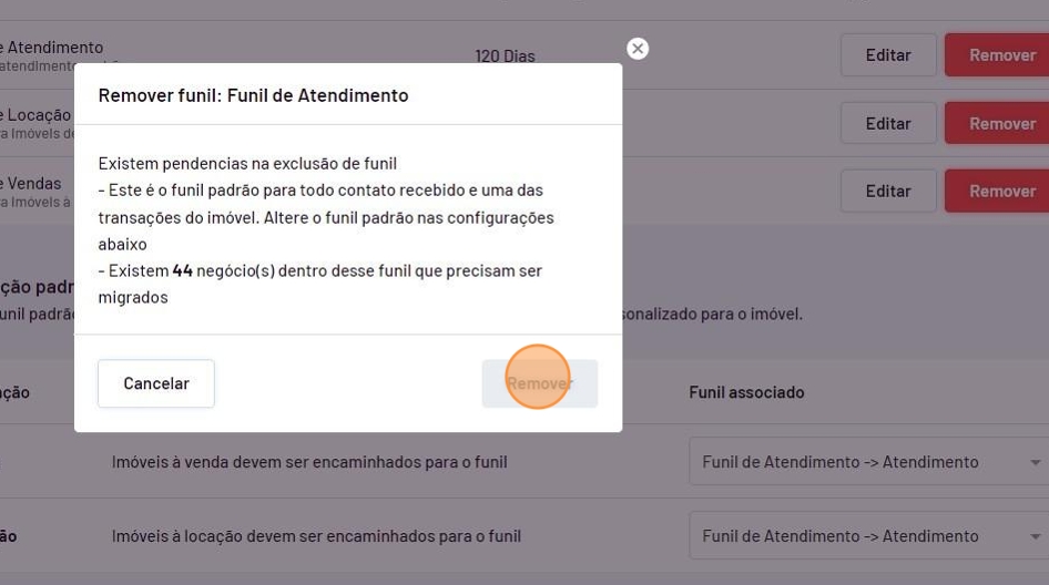 - Caso o Funil tenha negociações em andamento, você terá que migrar os dados antes de excluir ou ir até o funil desejado e dar "Perdido" em todas as negociações.