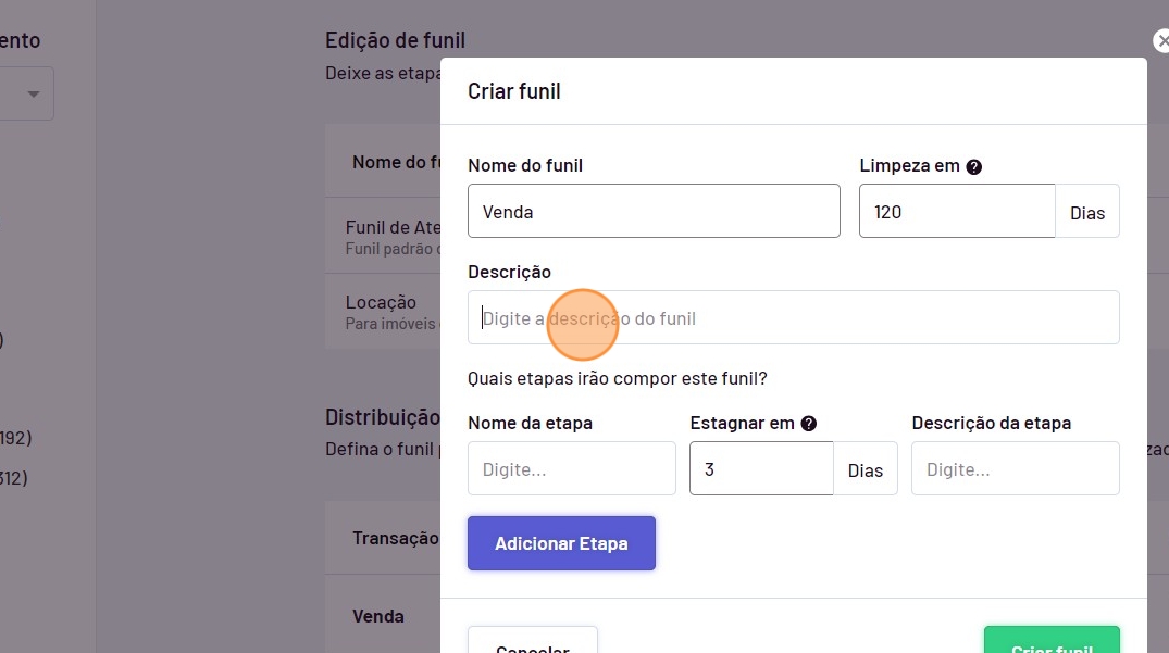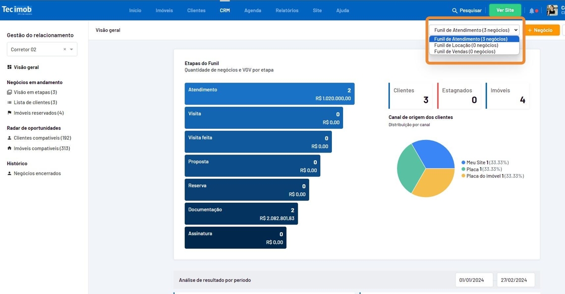 - Para alterar o Funil, basta clicar na caixinha de seleção e selecionar o Funil que deseja visualizar.