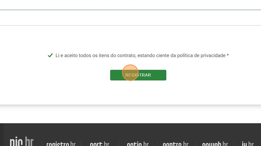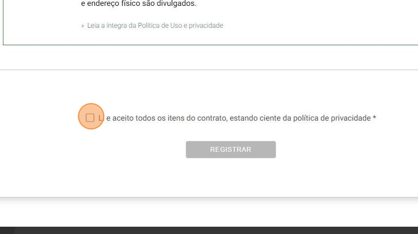 - Role a página até embaixo e clique em "Li e aceito todos os itens do contrato, estando ciente da política de privacidade."