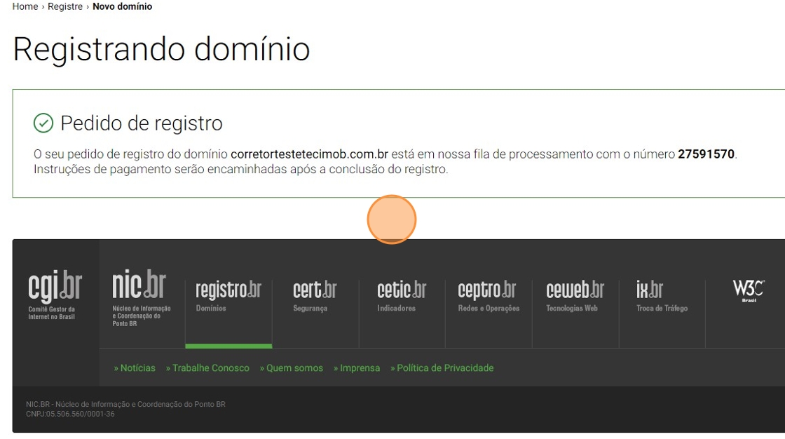 - Pedido realizado, agora basta aguardar as instruções de pagamento para concluir o registro.