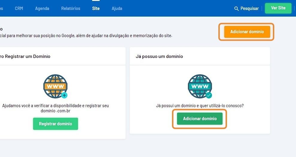 Após realizar o pagamento, será necessário adicionar o domínio no Tecimob.