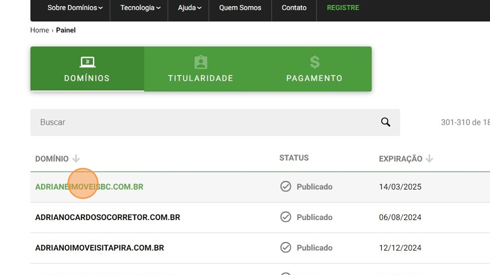 - Clique no domínio desejado.