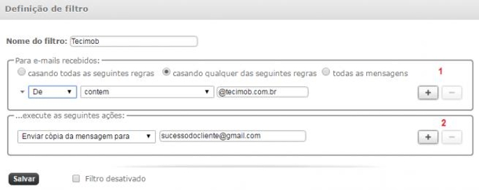 Na caixa 1 você define quais as regras para aplicação do filtro.