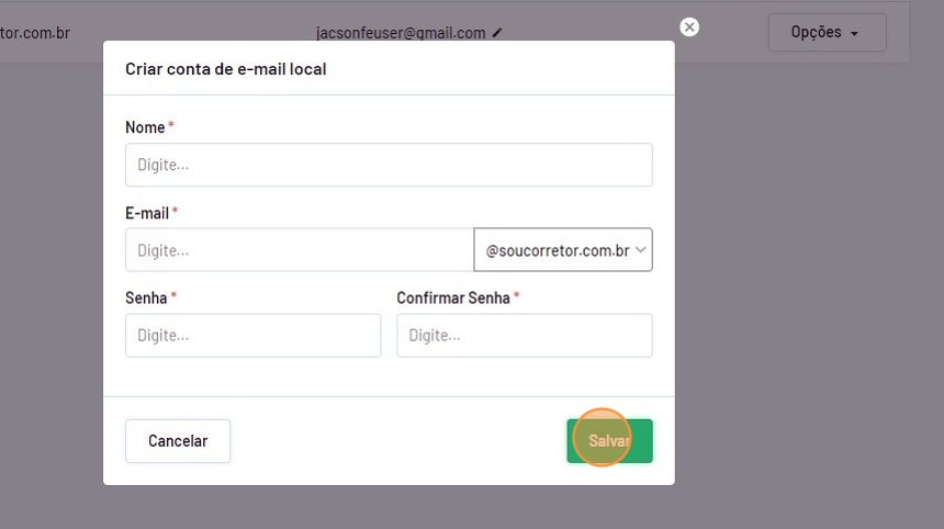- Preencha os dados com a conta que você deseja criar e clique em "Salvar".