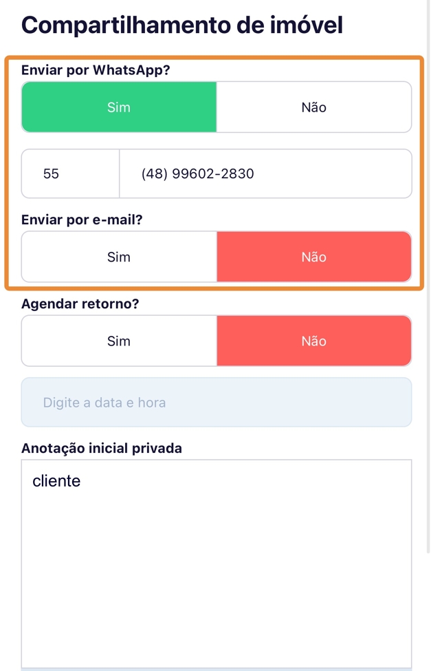 - Defina se irá querer enviar por WhatsApp e/ou por E-mail.
