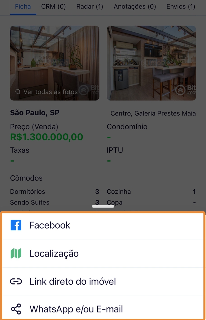 - Em seguida, selecione por onde ou o que deseja compartilhar do imóvel (como o caso da localização).