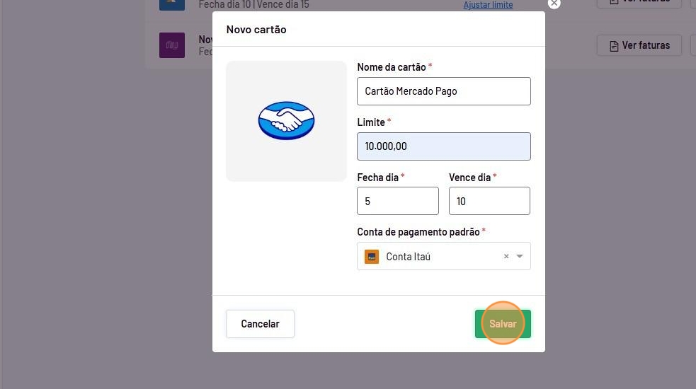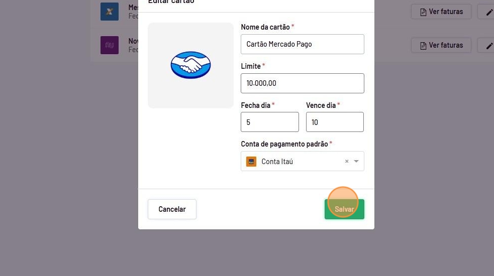 - Preencha as informações do cartão de crédito e clique em "Salvar".