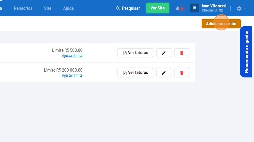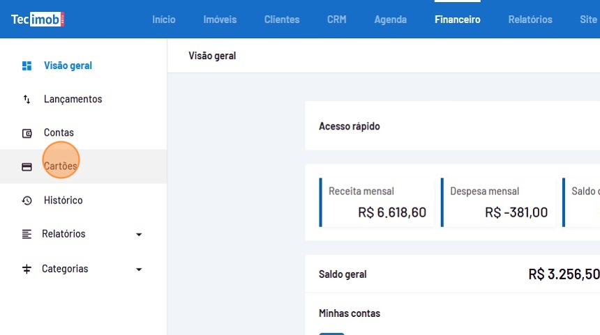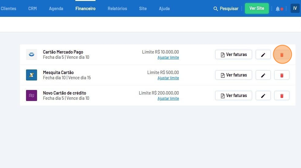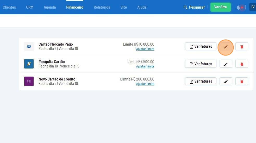 Para cadastrar, editar e excluir cartão, siga estes passos: