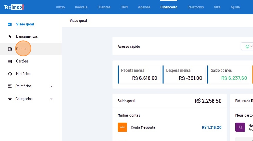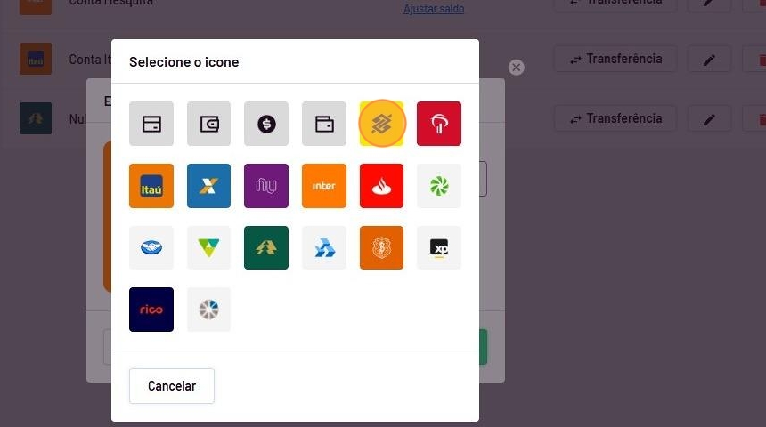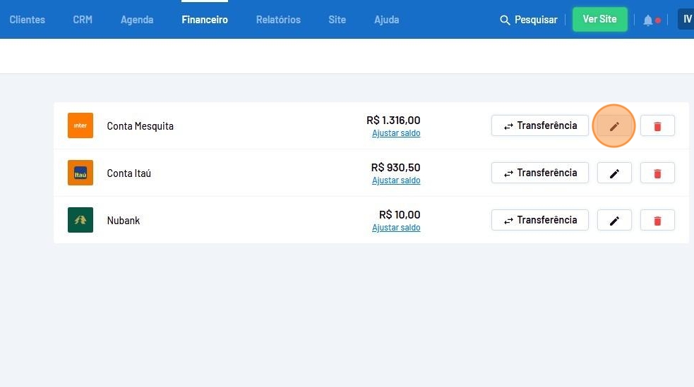 Para alterar ícone das contas no painel Financeiro, siga estes passos: