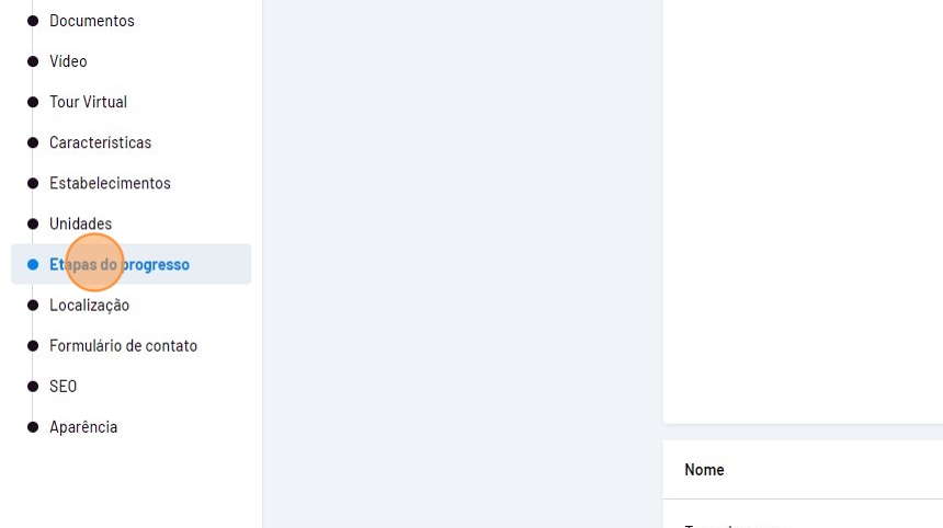 - No menu do canto esquerdo, clique em "Etapas do progresso".