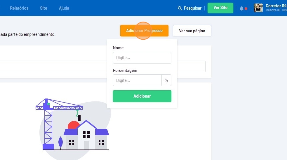 - Clique em "Adicionar Progresso" para adicionar novas etapas de progresso.