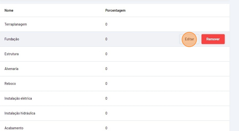 - Para editar as etapas clique em "Editar" e para remover a etapa, clique em "Remover".