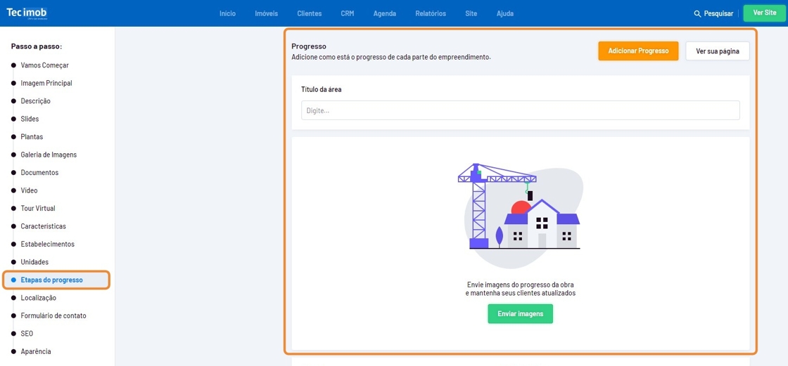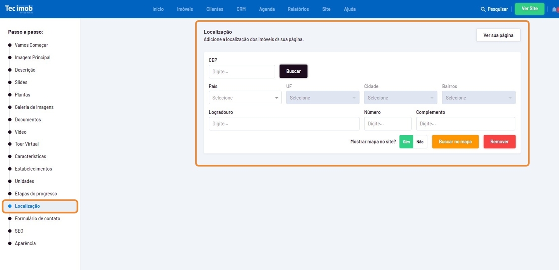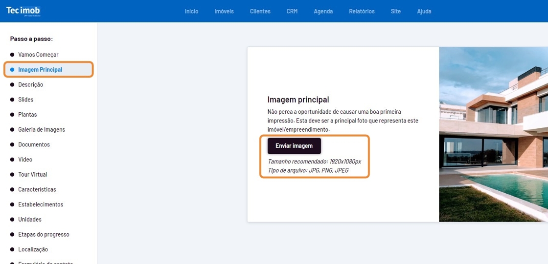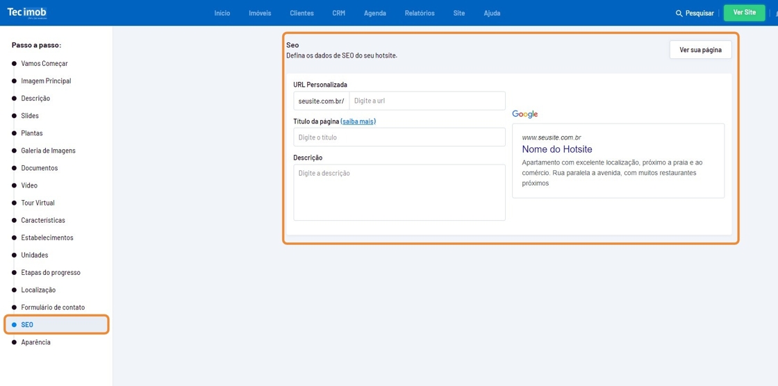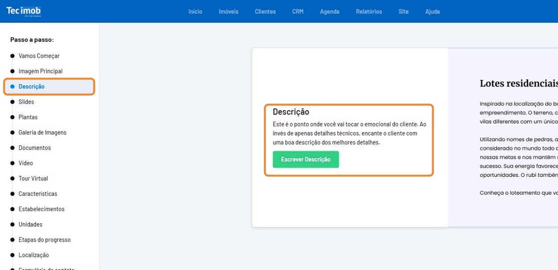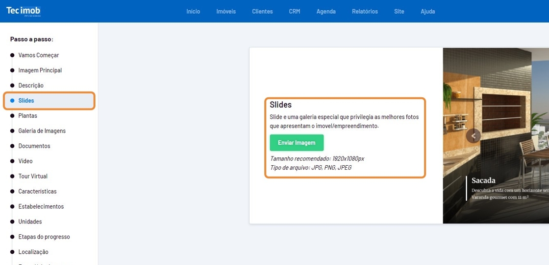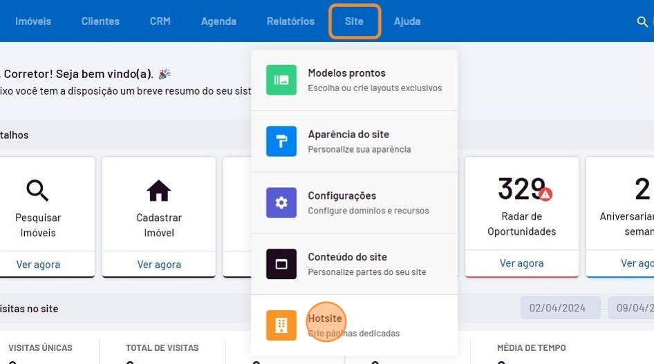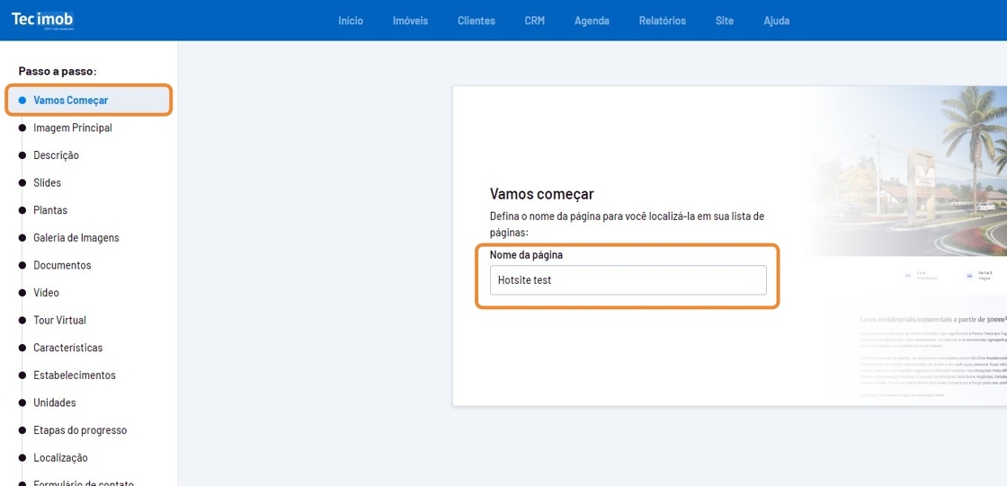 Para criar hotsite no sistema do Tecimob, siga esses passos: