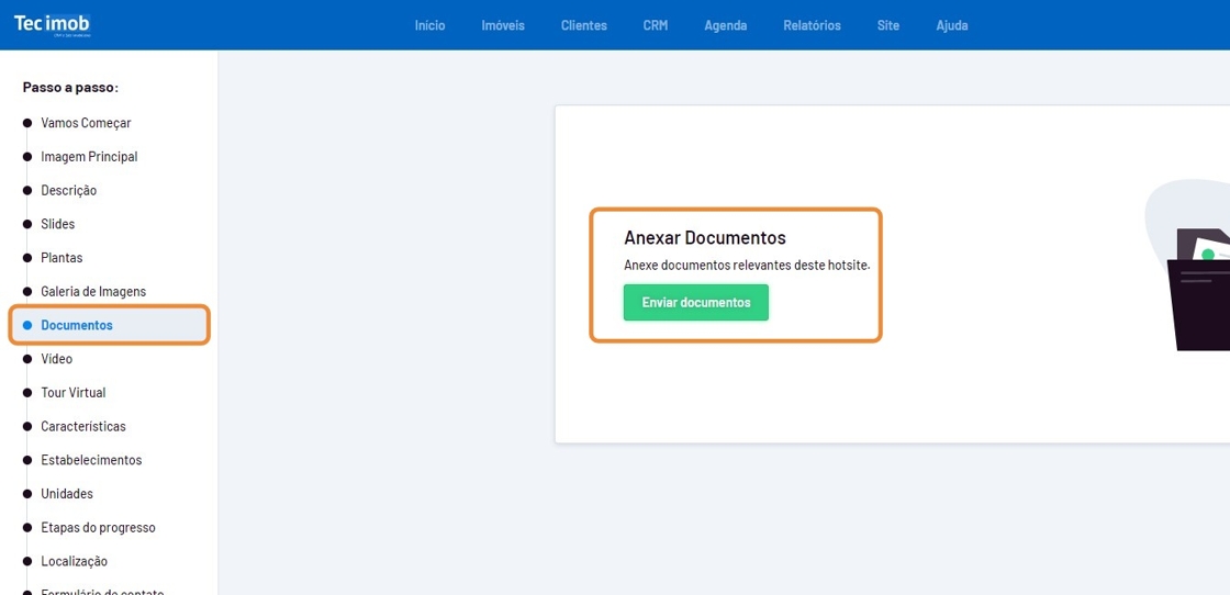 - Anexe documentos do Empreendimento, como por exemplo um arquivo com a planta do(s) imóvel(is).