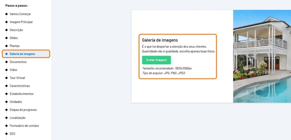 - Envie as melhores fotos do empreendimento para compor a galeria.