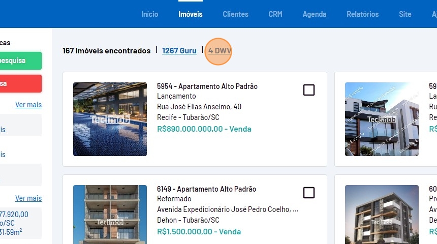Para compartilhar os imóveis da DWV no sistema Tecimob, siga estes passos: