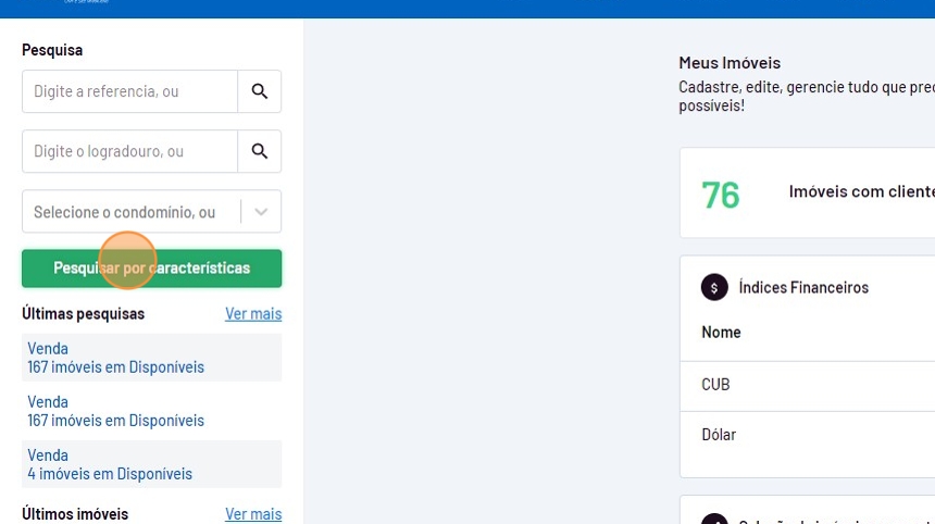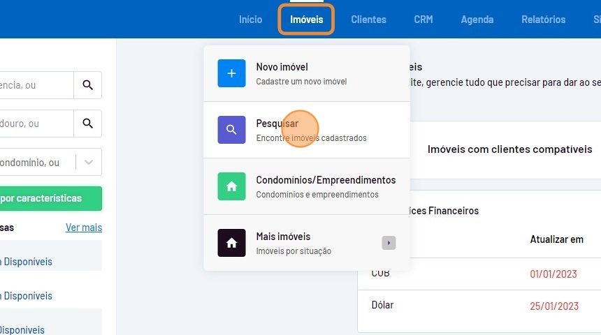 - Passe o mouse sobre o menu "Imóveis" e clique em "Pesquisar".