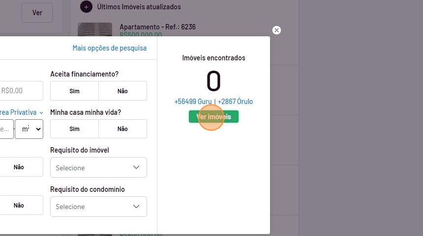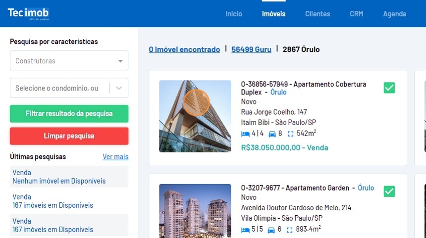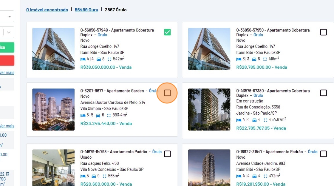 - Selecione os imóveis desejados clicando sobre a caixinha de seleção no canto superior direito de cada imóvel.