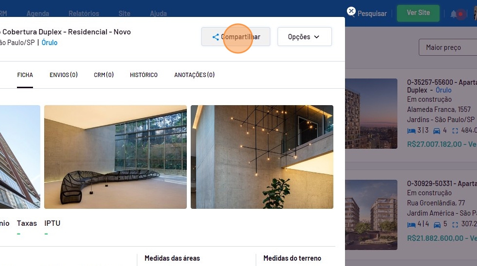 Para compartilhar os imóveis da rede Órulo, siga estes passos: