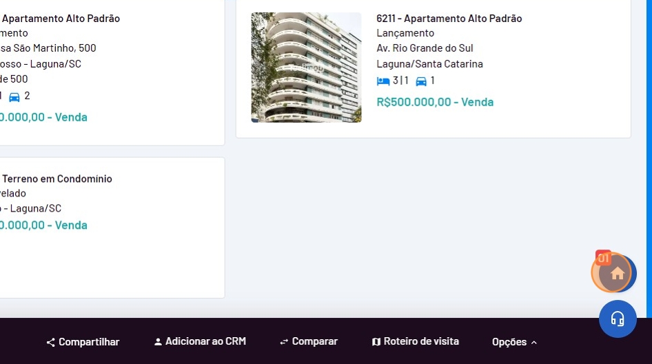 - Selecionando os imóveis em qualquer um dos formatos de visualização. aparecerá uma tarja preta com opções para você interagir com os imóveis que selecionou.