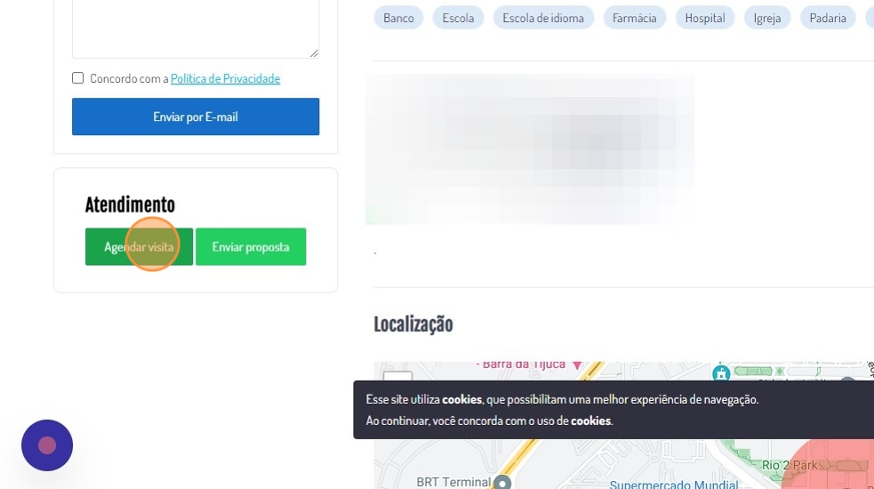- Após ativar os botões, quando seus clientes clicarem no imóvel que está para locação em seu site, terão a possibilidade de "Agendar uma visita" ou "Enviar uma proposta".