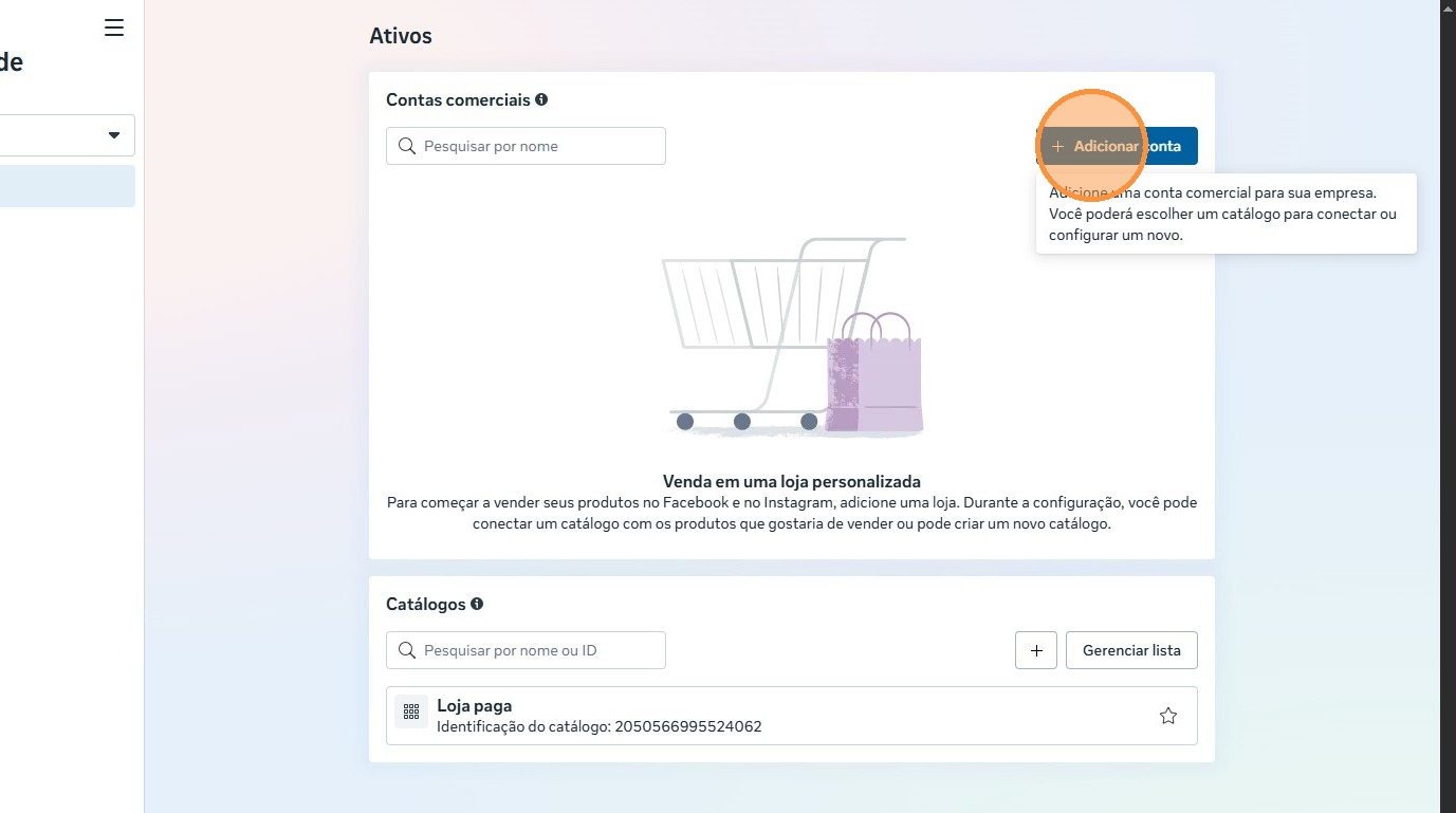 - Nesta pagina onde mostrar as lojas criadas, você irá clicar em "Adicionar conta"