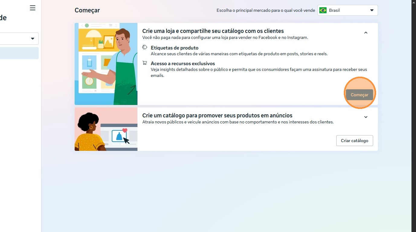 Para criar loja/catálogo no facebook, siga estes passos: