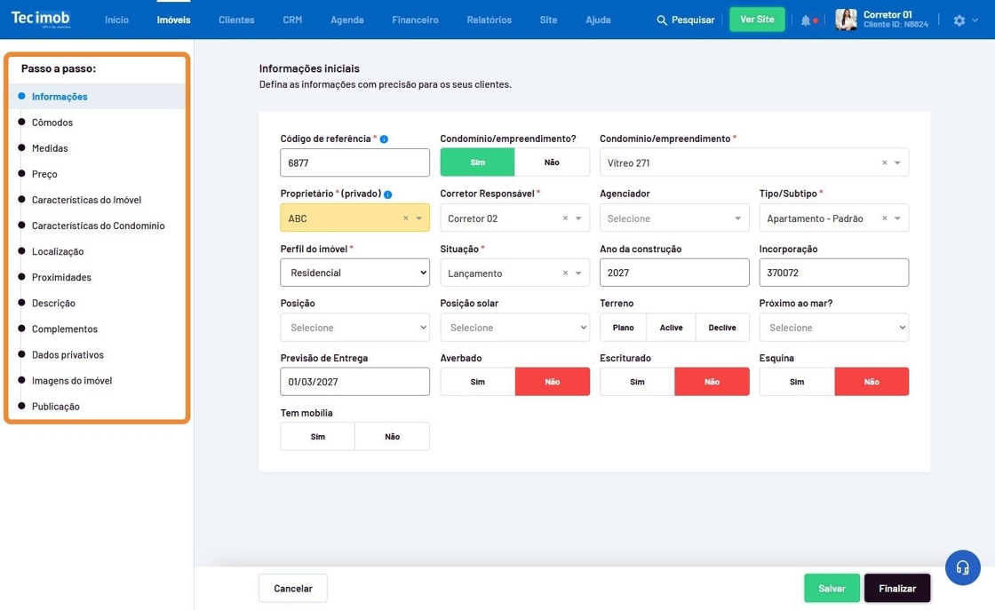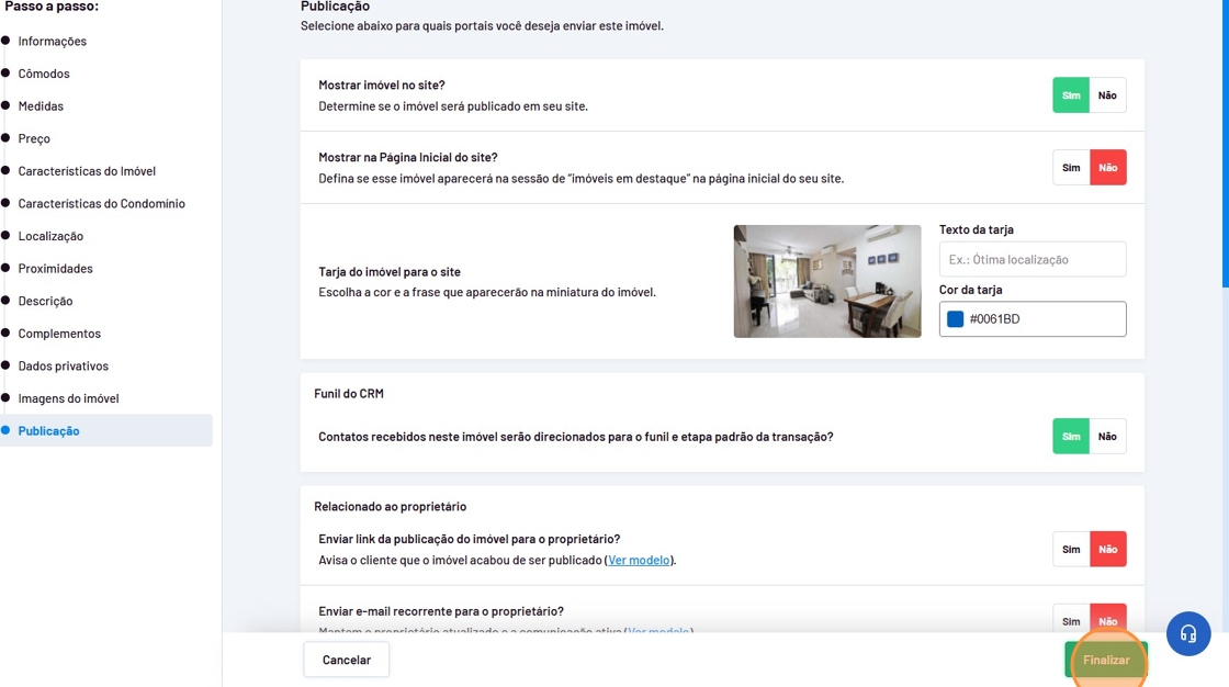 - Na última etapa, em "Publicação", clique no botão "Finalizar" para salvar o cadastro.