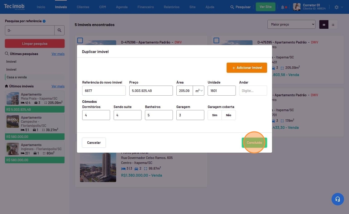 Para duplicar um imóvel vindo da DWV, siga o passo a passo: